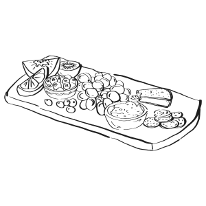 Our savory welcome board includes meats, cheeses, dips, pickled items, crackers, nuts, fruit and dried fruit.Small - Serves 2-4